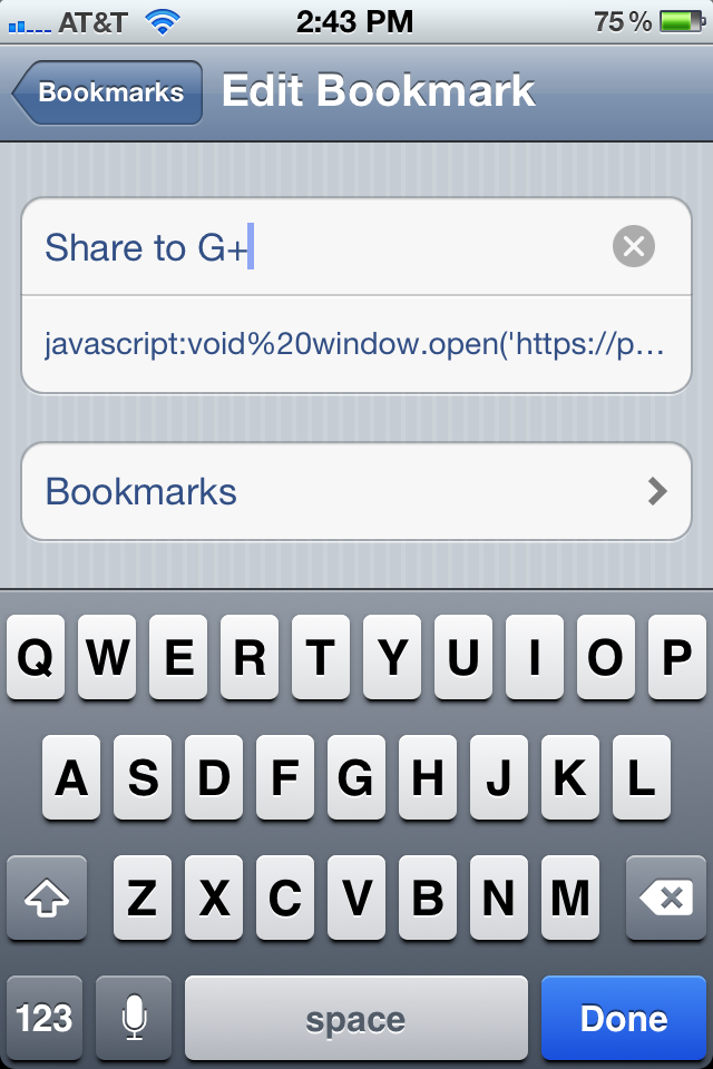 Tap “Done” until you’re back in Safari, and your new Share to G+ bookmarklet is ready to use!