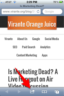 To share any web page you’re browsing on your iOS device, just tap the Bookmark icon at the bottom of the Safari window (see Step 6 above). Then tap “Share to G+” (or whatever you named your bookmarklet).